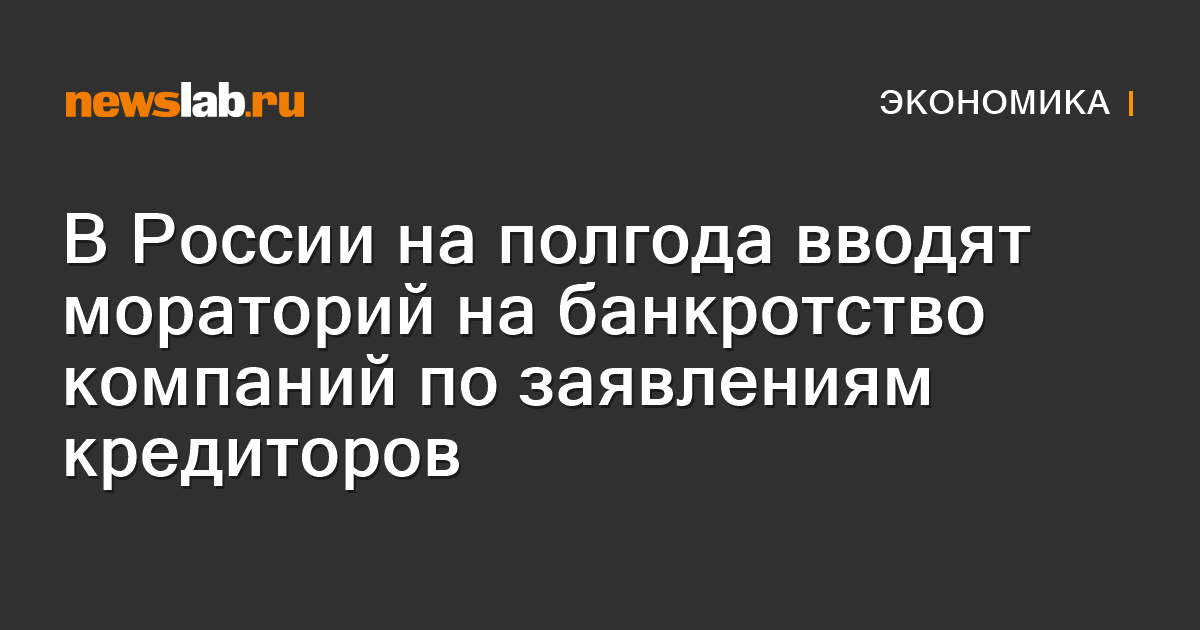 В россии с 1 апреля на полгода вводится мораторий на возбуждение дел о банкротстве по заявлениям кредиторов, заявил глава правительства . В россии с 1 апреля до 1 ноября не будут возбуждать дела о банкротстве физических и юридических лиц по заявлениям от кредиторов. В течение этого срока кредиторы не смогут обратиться в суд с заявлением о банкротстве любого юридического лица, гражданина или индивидуального . Правительство с 1 апреля ввело мораторий на возбуждение дел о банкротстве по заявлениям кредиторов. Правительство рф ввело мораторий на возбуждение дел о банкротстве по заявлениям кредиторов, который будет действовать в течение шести .
